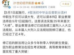 重磅!取消初中毕业后普职分流!5月1日起施行亲爱的读者们,今天我要给大家带来一个超级重磅的消息!那就是,我国将从5月1日起正式取消初中毕业后普职分流!这个政策的实施,无疑将对广大学生和家长产生深远的影响。接下来,就让我带你从多个角度来了解一下这个政策的背后故事吧!一、政策背景:中考分流焦虑近年来,中...